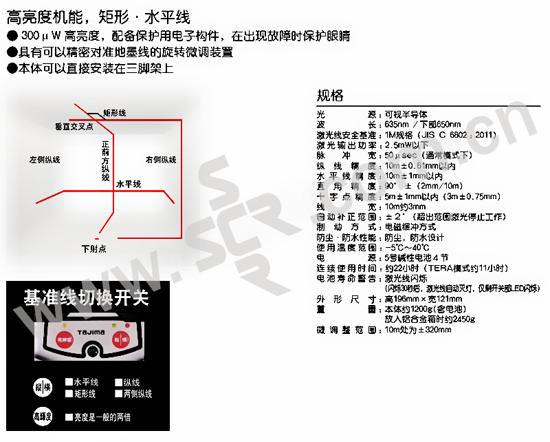 ·具有旋转微调功能,可以方便对准地面基准线。