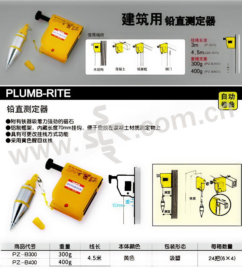 TAJIMA/田岛 铅直测定器附重锤 1009-0073 300g 黄色,线长4.5M 1个