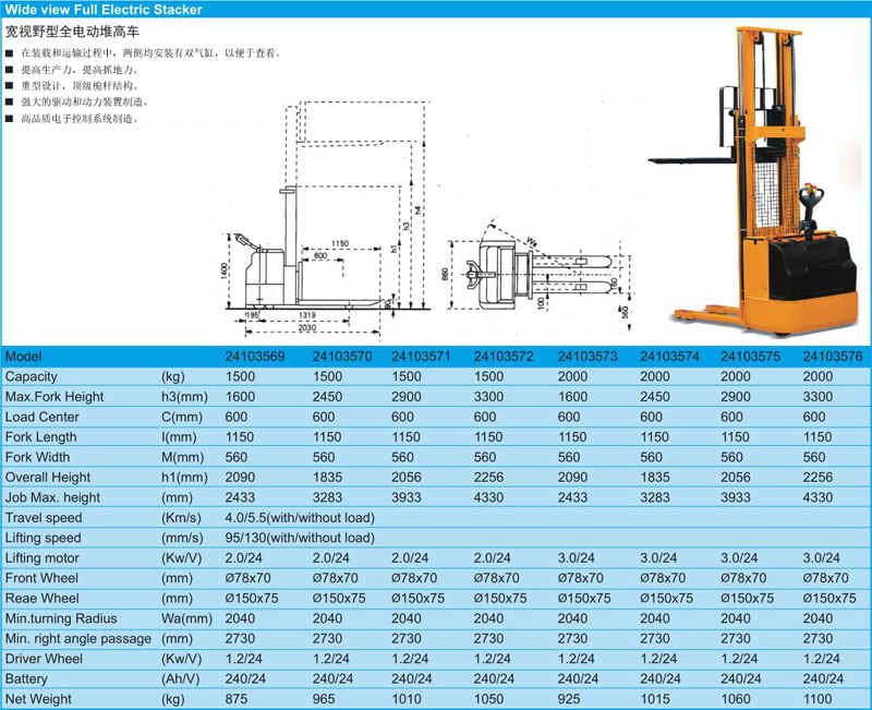 Wide view Full Electric Stacker
