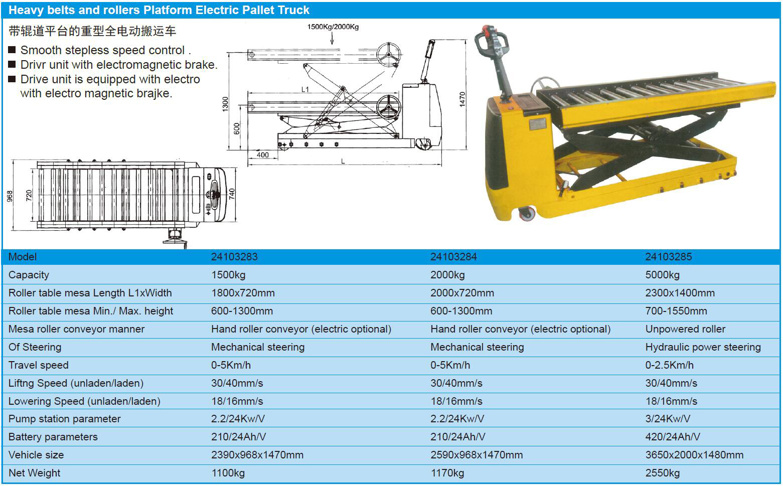 Heavy belts and rollers Platform Electric Pallet Truck