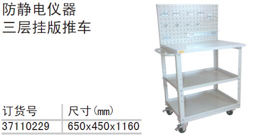·防静电仪器三层推车 ·用于周转物品,可组合成多种 ·款式可选配单层抽屉,钢制搁 ·板等标准附件 ·均匀承载,承载能力: 1 5 0 k g(整车),每50kg(每层) ·防静电轮,2个刹/2个万向
