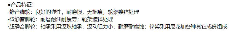 ·微静音脚轮:耐磨耐油耐疲劳;轮架镀锌处理