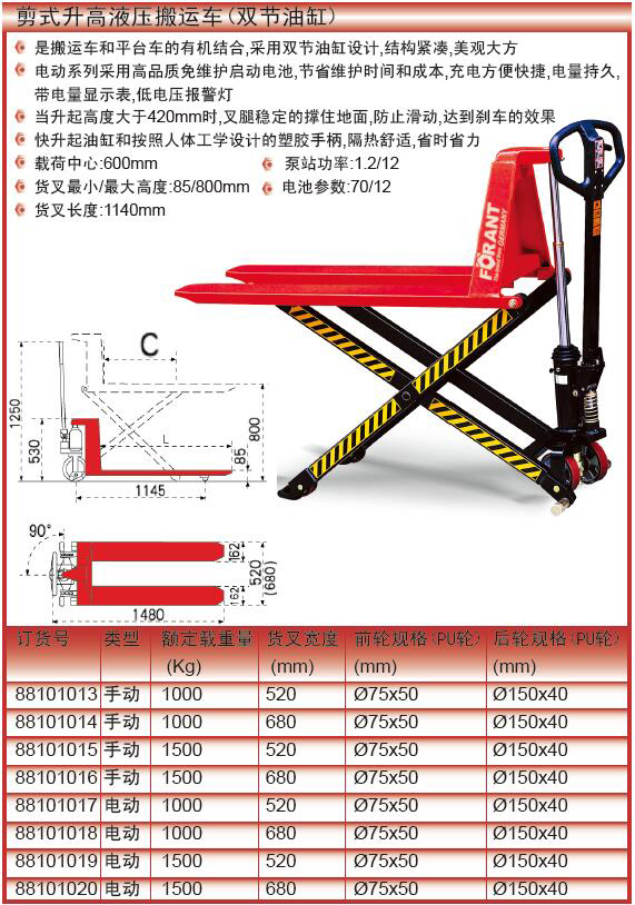 ·载荷中心:600mm 泵站功率:1.2/12