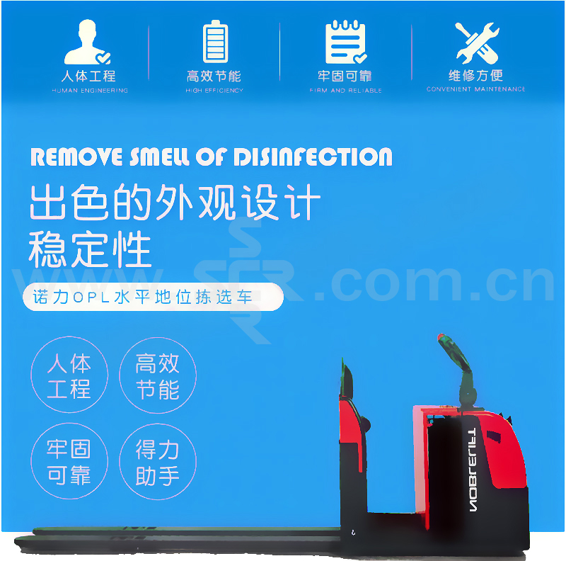 ﹒转向:180°全电动无缝隙转向,到+90°时转向电机自动停止,消除仍和产生过载的机会,当转向+20°时,行驶速度自动降低,确保车辆驾驶的安全﹒行走电机和转向电机都是用三相交流技术,使电机转速能平滑调节,调节范围广泛,效率高﹒免维护,彻底免除更换电机碳刷的麻烦