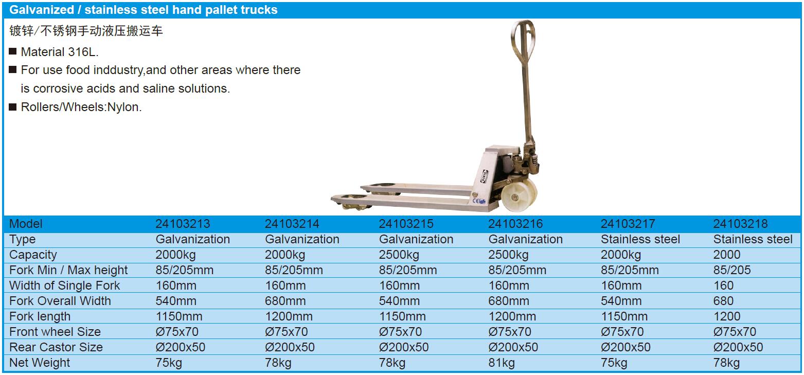 Galvanized / stainless steel hand pallet trucks