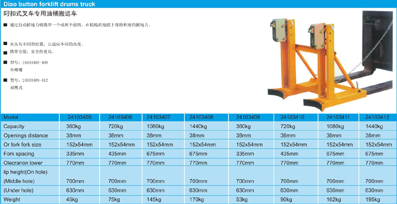 英文名称:  Diao button forklift drums truck