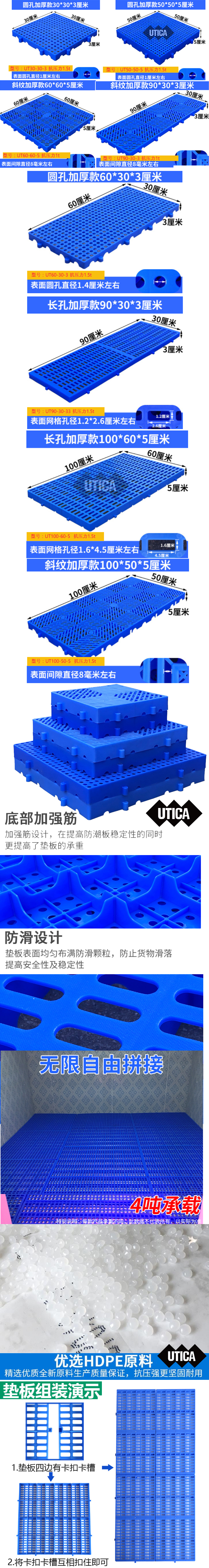 防潮垫仓板加厚塑料托盘冷库地面超市仓库网格组合防滑隔水脚踏板