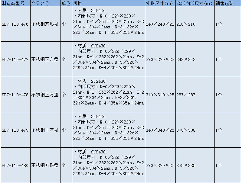 SLAMED 不锈钢正方盘 K-3 SD7-110-479