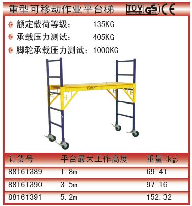 ·额定载荷等级: 135KG ·承载压力测试: 405KG ·脚轮承载压力测试:1000KG