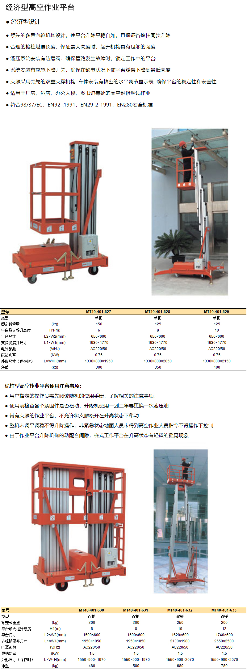 经济型高空作业平台 单桅