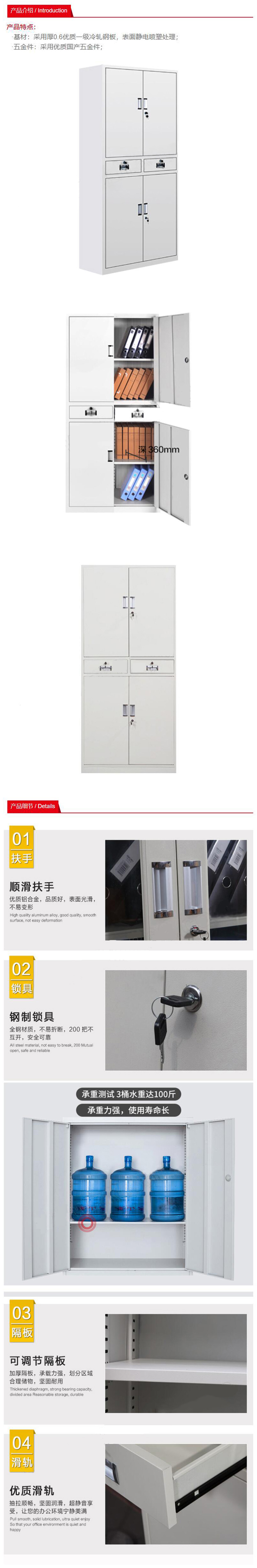 ·顺滑扶手,优质铝合金,品质好,表面光滑,不易变形 ·钢制锁具,不易折断 ·可调节隔板 ·优质滑轨