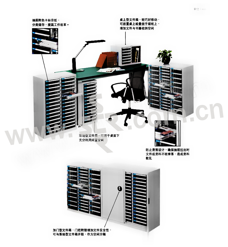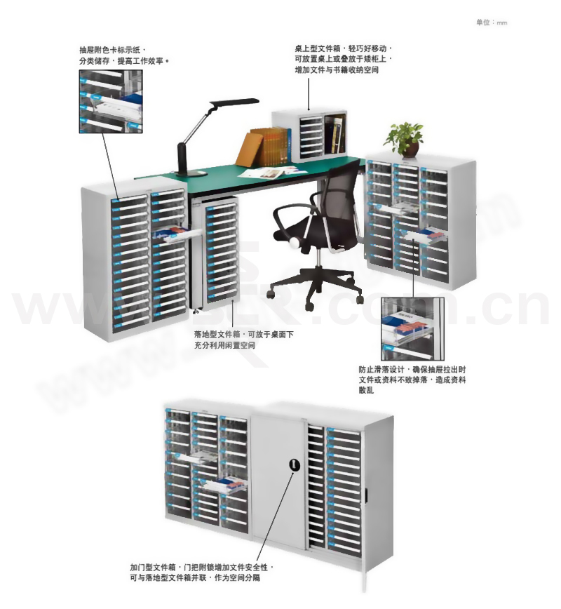 轻巧便于移动,可放置桌上或叠放于矮柜上,增加文件与书籍收纳空间