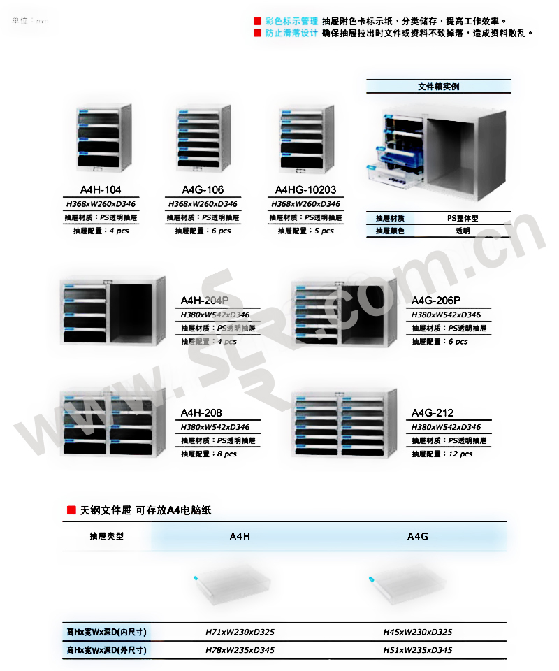 TANKO/天钢 文件箱(桌上型) A4G-106 W260×D346×H368mm 6个透明抽屉 1个