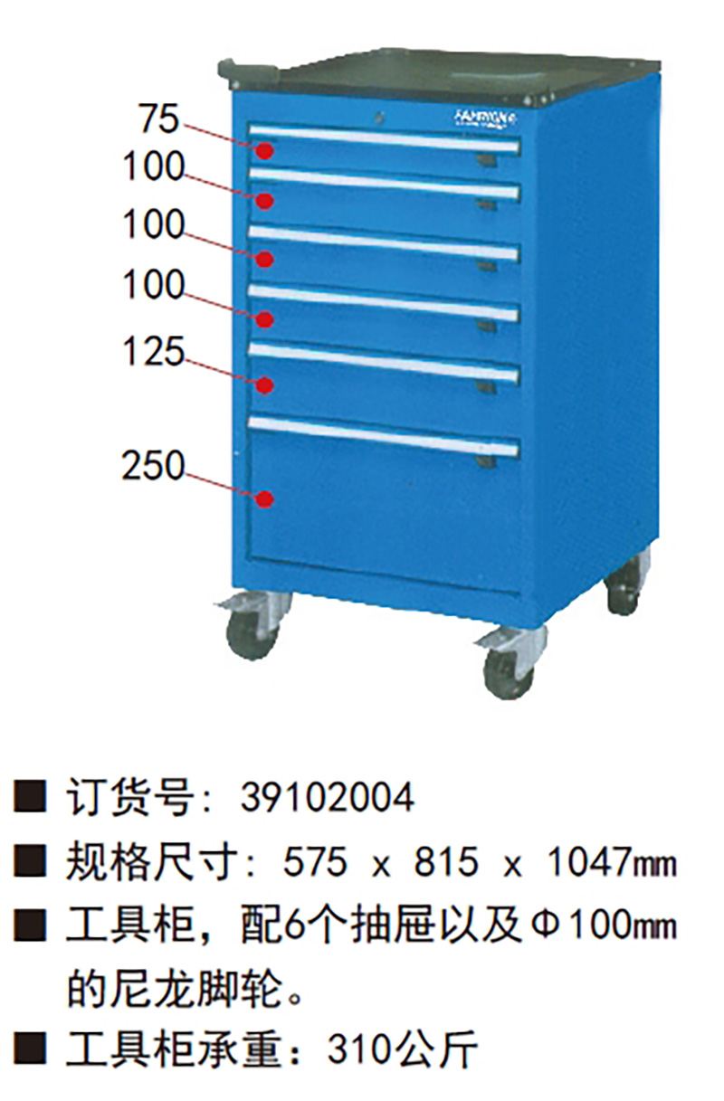 ·配6个抽屉以及Φ100mm的尼龙脚轮。