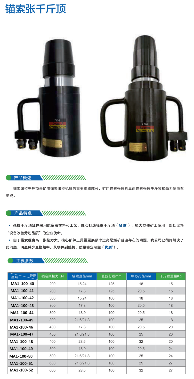 规格:  额定张拉力 600KN 制造商型号:  MA1-100-52