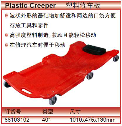 ·波状外形的基础增加舒适和两边的口袋方便 ·存放工具和零件 ·高强度塑料制造,兼顾且能轻松移动 ·在修理汽车时便于移动
