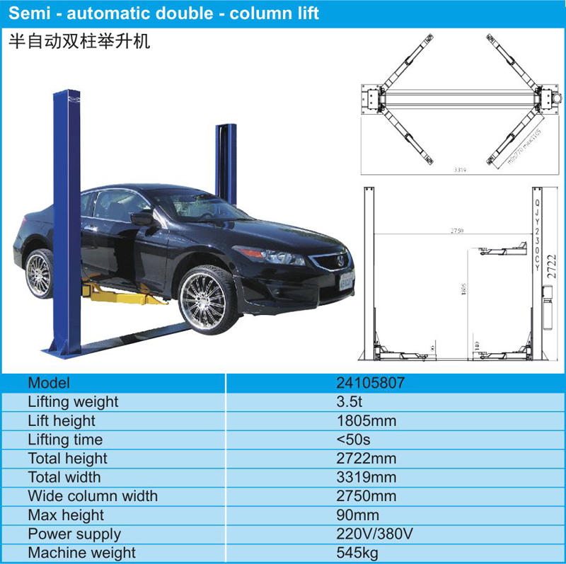 英文名称:  Semi - automatic double - column lift