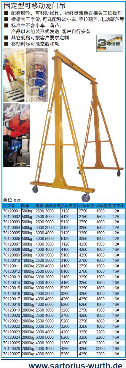 ·配有脚轮,可移动操作,能够灵活地在相关工位操作横梁为工字梁,可选配移动小车,手拉葫芦,电动葫芦等