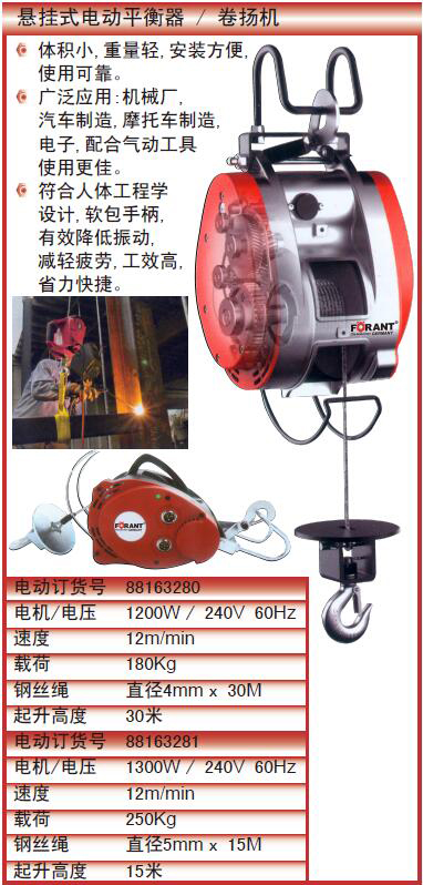 悬挂式电动卷扬机/250KG