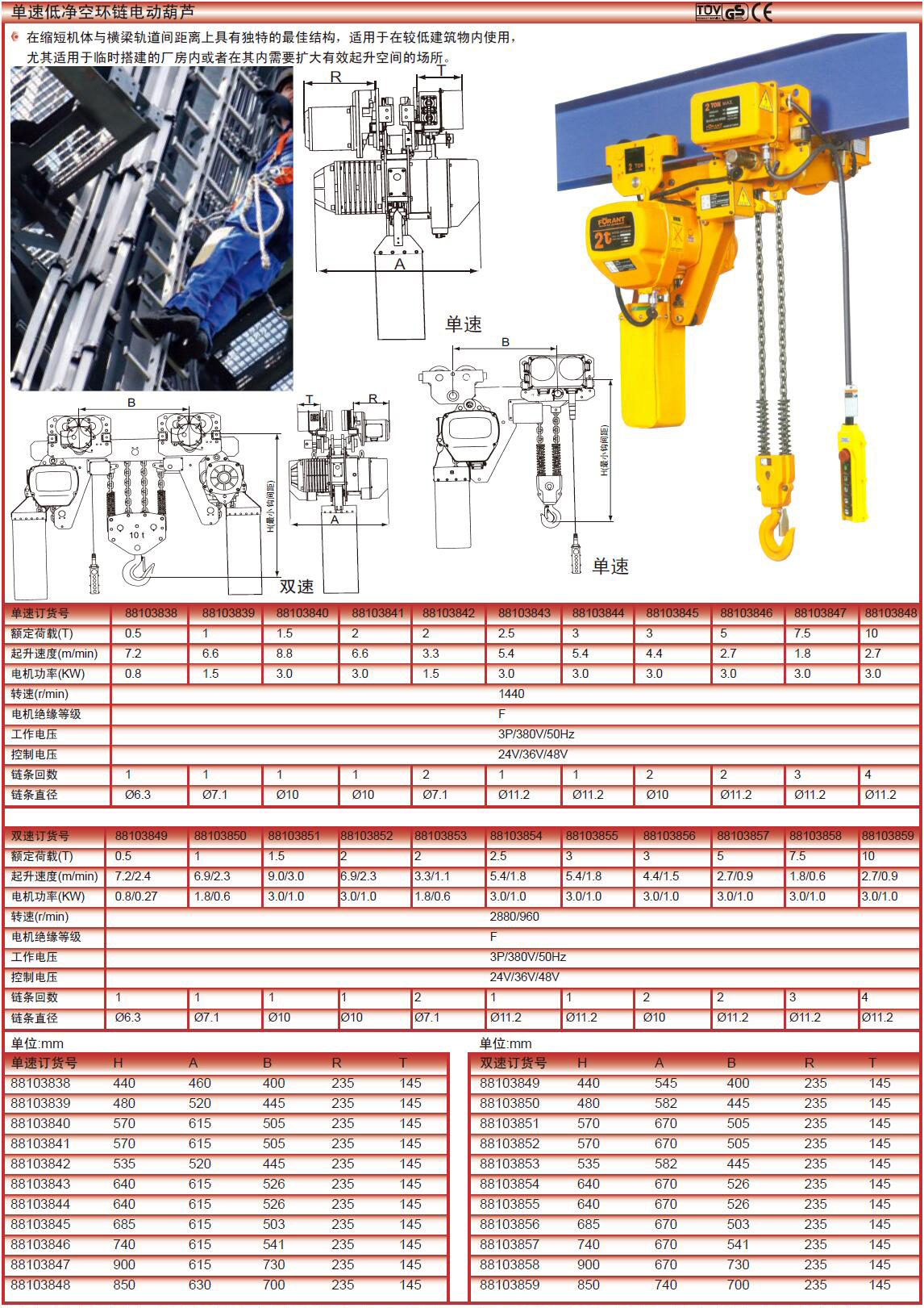 ·在缩短机体与横梁轨道间距离上具有独特的最佳结构,适用于在较低建筑物内使用, ·尤其适用于临时搭建的厂房内或者在其内需要扩大有效起升空间的场所。
