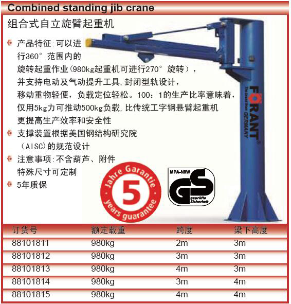 ·产品特征:可以进行360°范围内的旋转起重作业(980kg起重机可进行270°旋转),并支持电动及气动提升工具,封闭型轨设计,移动重物轻便,负载定位轻松。