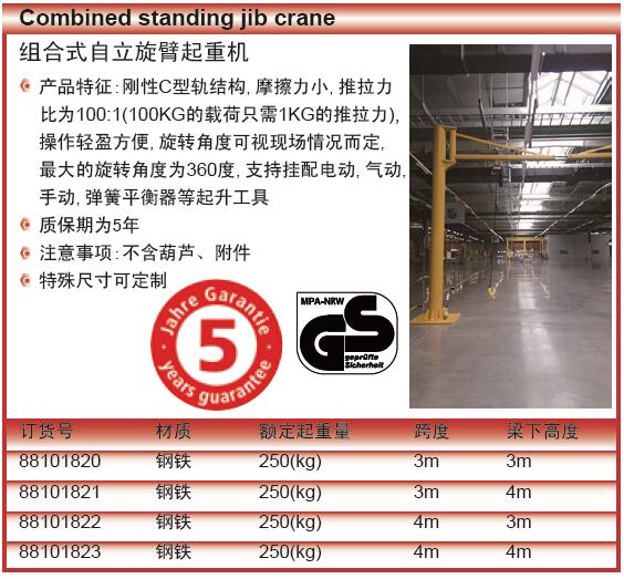 ·产品特征:刚性C型轨结构,摩擦力小,推拉力比为100:1(100KG的载荷只需1KG的推拉力),操作轻盈方便,旋转角度可视现场情况而定,最大的旋转角度为360度,支持挂配电动,气动,手动,弹簧平衡器等起升工具 ·质保期为5年 ·注意事项:不含葫芦、附件 ·特殊尺寸可定制