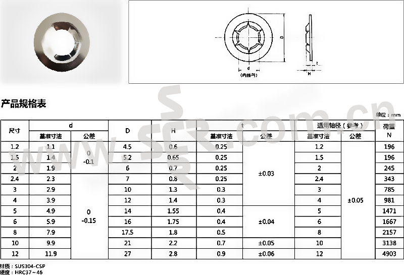 TAKASHIMA/高岛 止退挡圈 轴用 不锈钢304 本色 φ1.2 1个