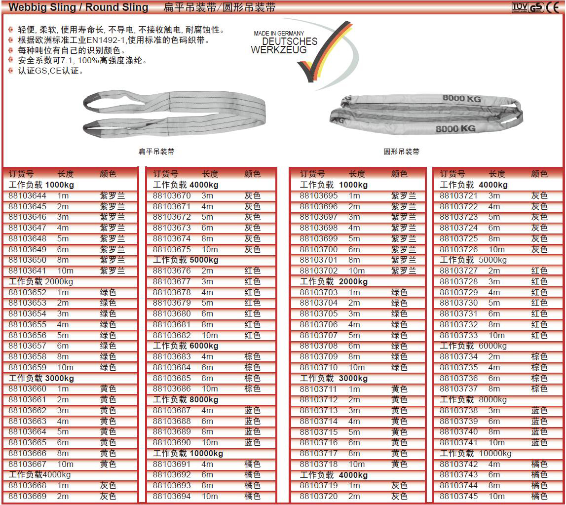 ·根据欧洲标准工业EN1492-1,使用标准的色码织带。