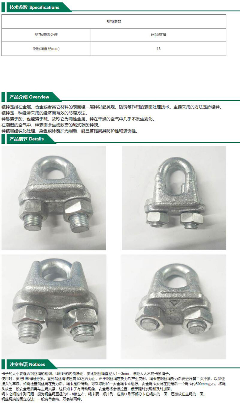 GD1990 GE70-400-3244 镀锌钢丝绳卡扣 φ18mm 18.42