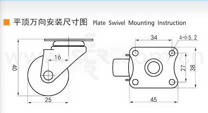 EDL/易得力 平顶万向超级人造胶TPE脚轮 20111-201-52 载重30kg 轮径25mm 脚轮材质超级人造胶 1个