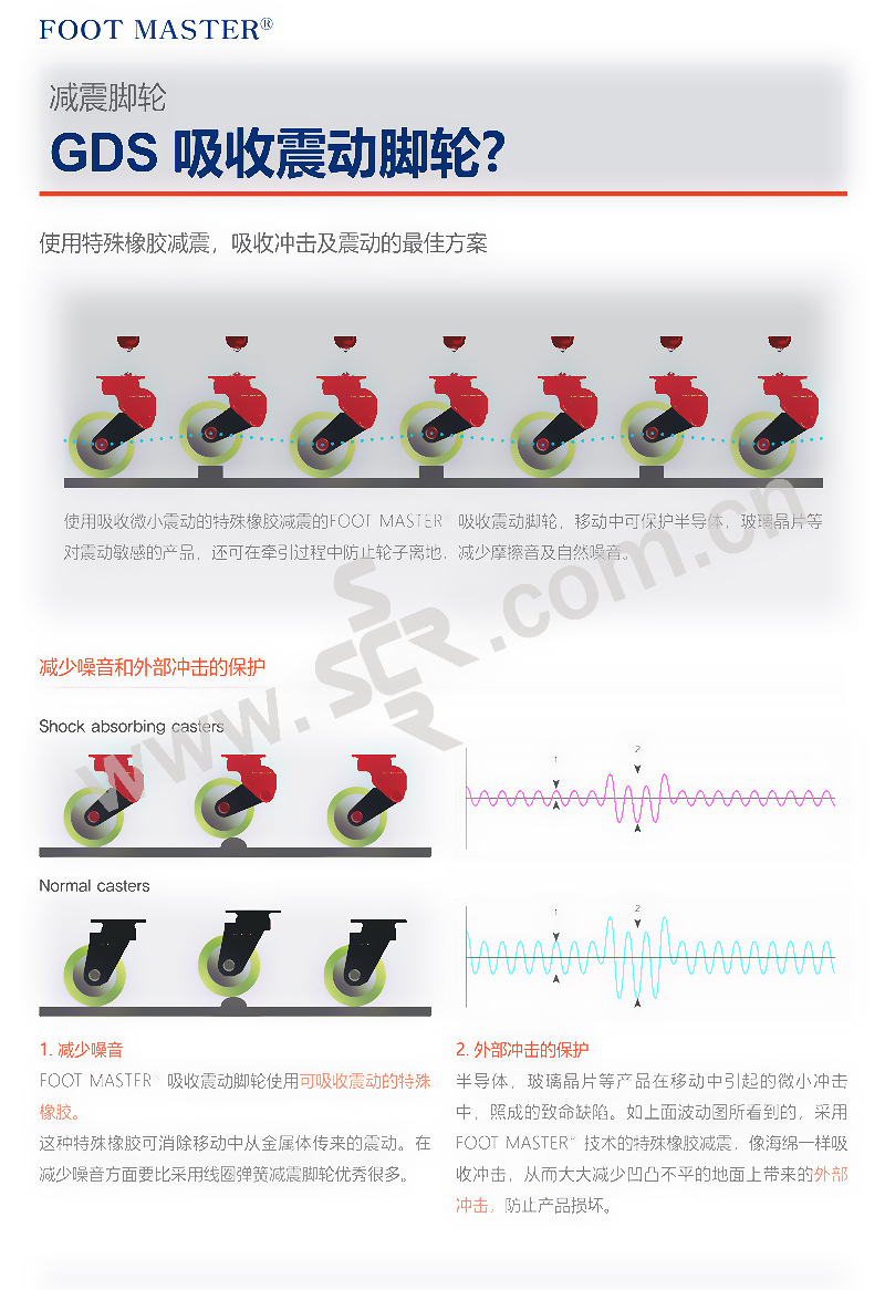 FOOT MASTER/福特马特 GDS系列定向型减震脚轮 GDS-100-ARF-LUD 载重100kg 底板73×73mm 1个