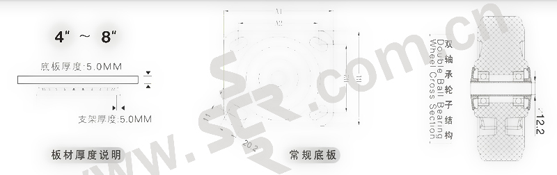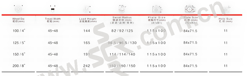 ·高弹力橡胶,双轴承,钢支架,重型承载量大。