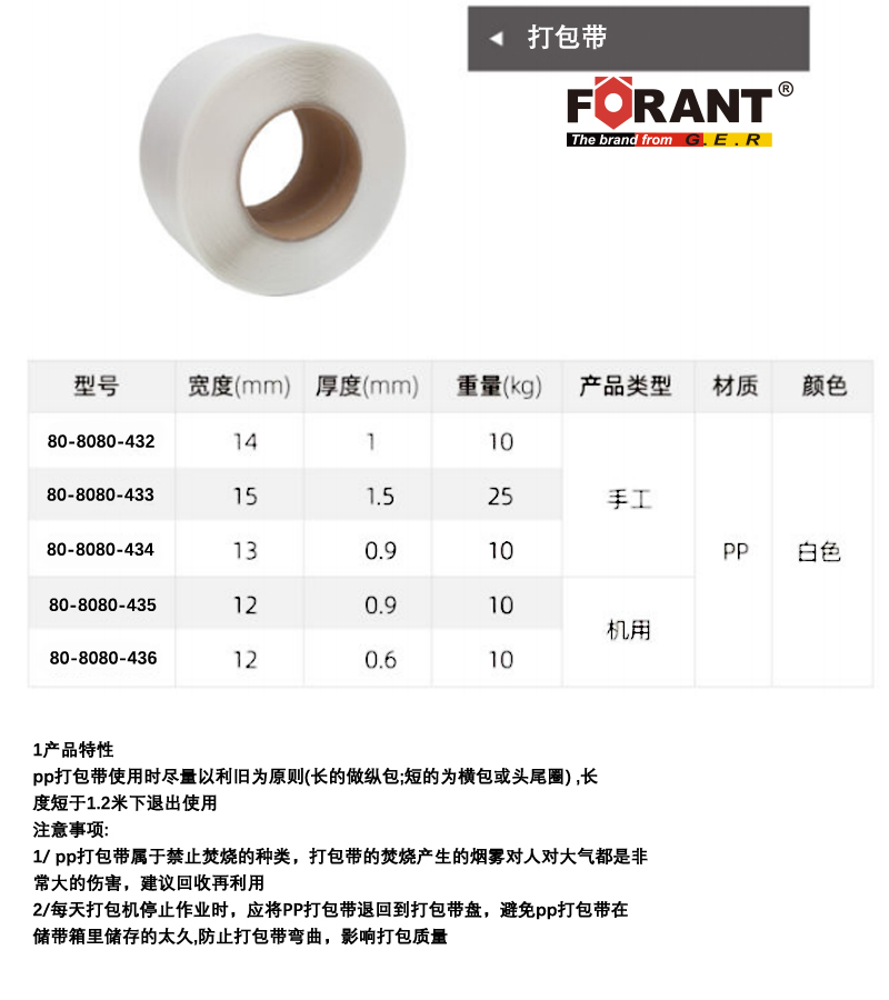 A41089 80-8080-436 机用 PP 12mm 0.6mm 10kg 321.21