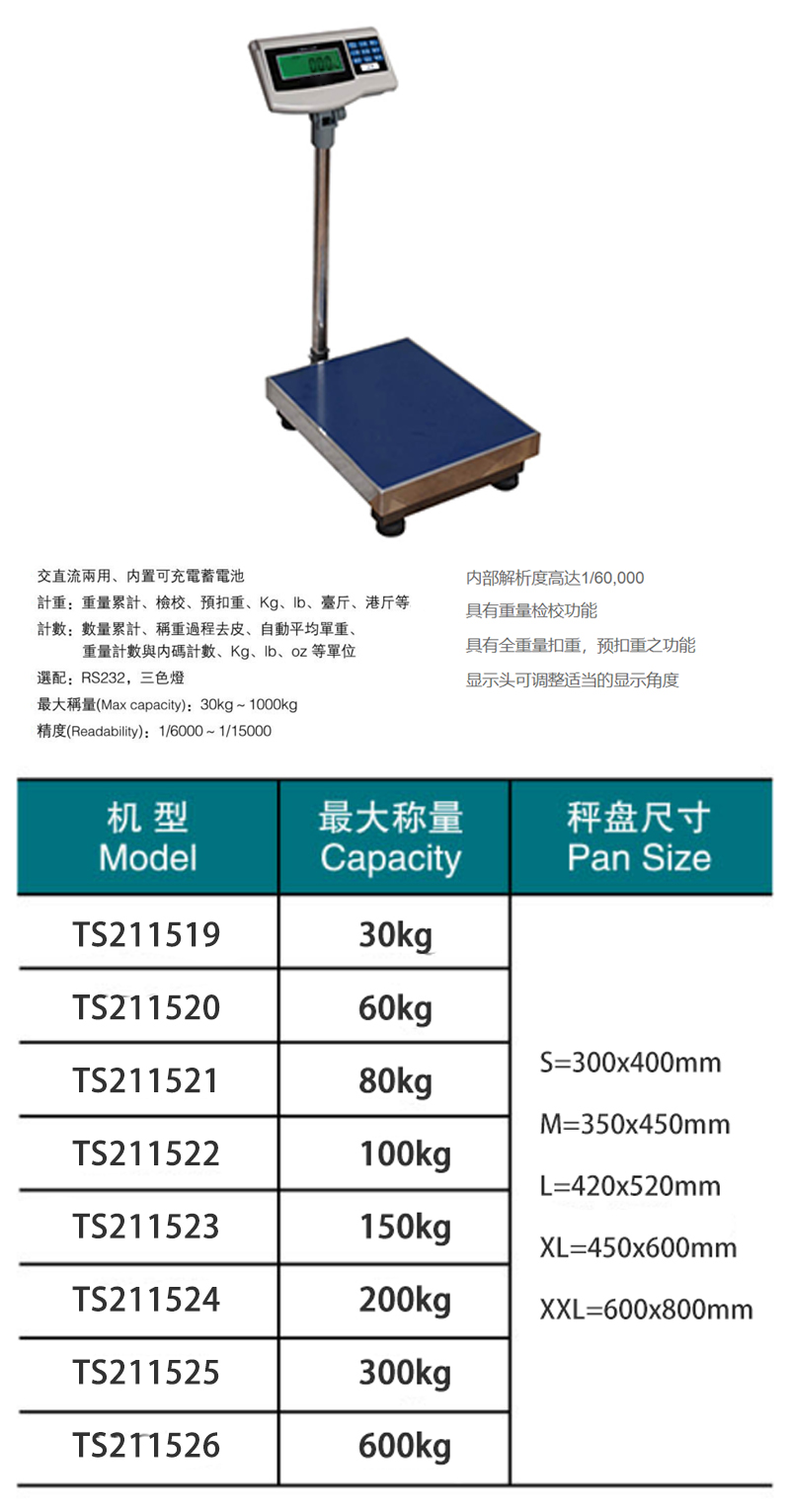 最大称量 300kg L 不带打印
