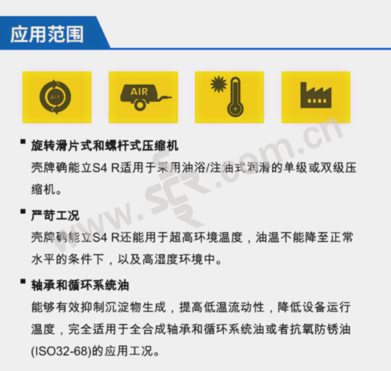 ·换油期超长: 在排气温度超过100℃的运行条件下,其换油周期也可长达12000小时(需制造商认可)。 ·性能稳定: 出色的抗热和抗化学分解性能,保证稳定的油品性能。 ·抗 磨 损: 含有先进的无灰抗磨损添加剂,有效保护压缩机内部金属表面,减少腐蚀和磨损。
