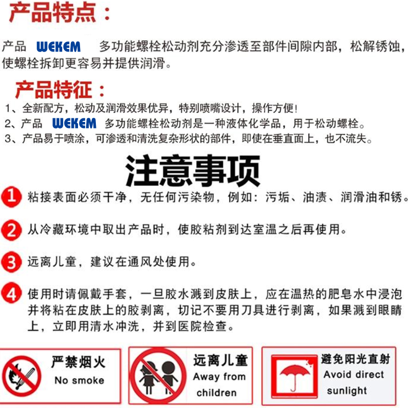 ·充分渗透至部件间隙内部,松解锈蚀,是螺栓拆卸更容易并提供润滑。