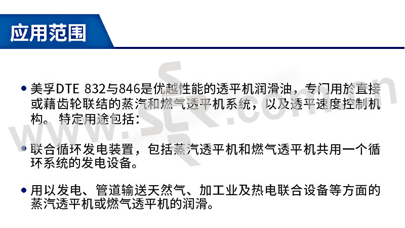 · 符合主要制造商对燃气与蒸汽透平机的要求: 避免误用润滑油,引起昂贵的换油费用。 · 优异的氧化稳定性: 减少停工期,运作更可靠。 · 优异的抗磨损保护性能。