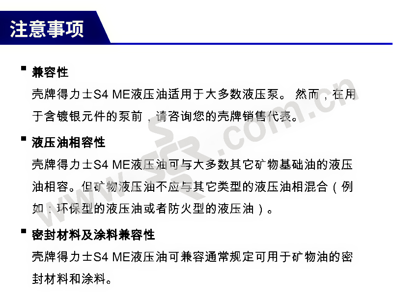 ·能源效率高:液压系统能源效率平均可提高8%。 ·维护费用低:杰出的氧化稳定性。 ·抗磨保护好: 非凡的抗磨保护,在威克士(Vickers)V104C试验中的磨损量比标准限值低于68%。 ·环境影响小: 采用了无灰抗磨技术和低硫基础油,相比与常规含锌液压油,在发生意外泄漏时,减少了对环境的影响。