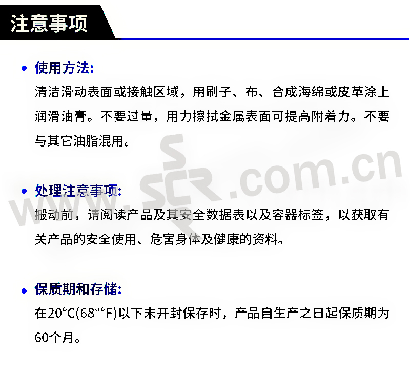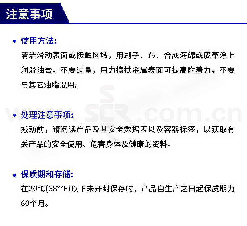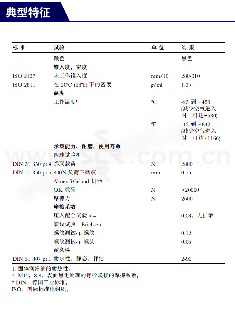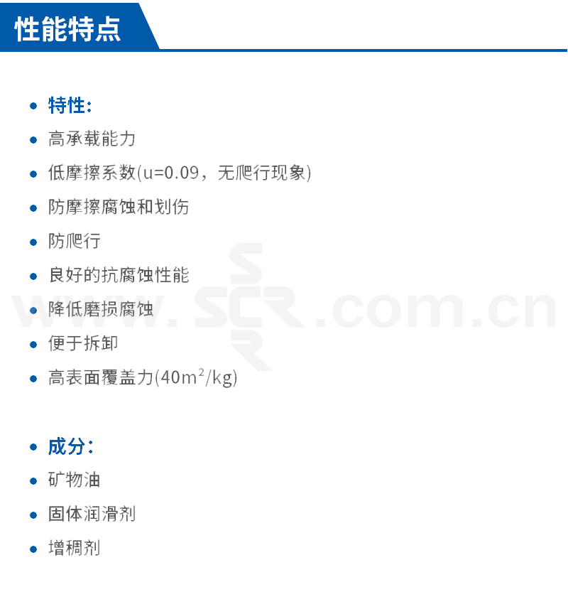 ·润滑性优:低摩擦系数,有助于拆卸。 ·极佳保护:防微动腐蚀,胶合和爬行。