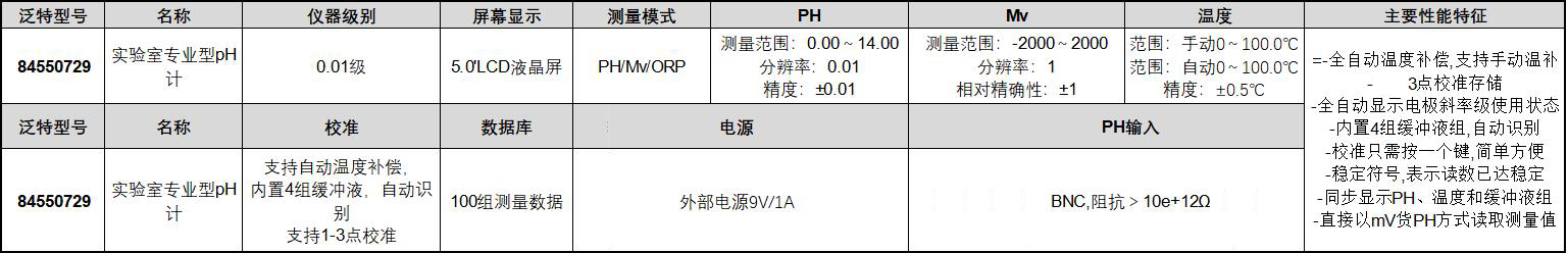 订货号 制造商型号 PH范围 相对PH精度 仪器级别 屏幕显示 测量模式 Mv 温度 p×分辨率 校准 数据库 电源 PH输入 精度 主要性能特征 价格 购物车