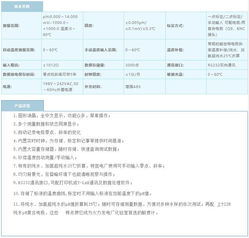 规格:  pH:0.000~14.000 制造商型号:  TS1901100