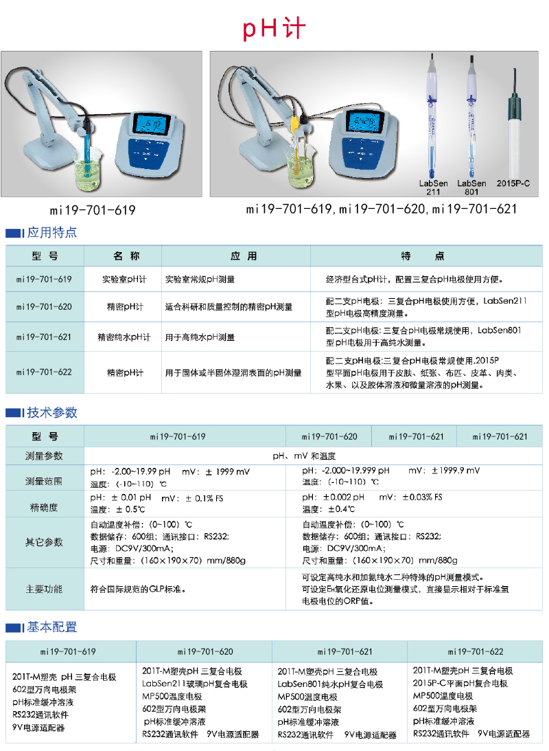 PH:±0.002PH, mv:±0.03%FS,温度:±0.4℃
