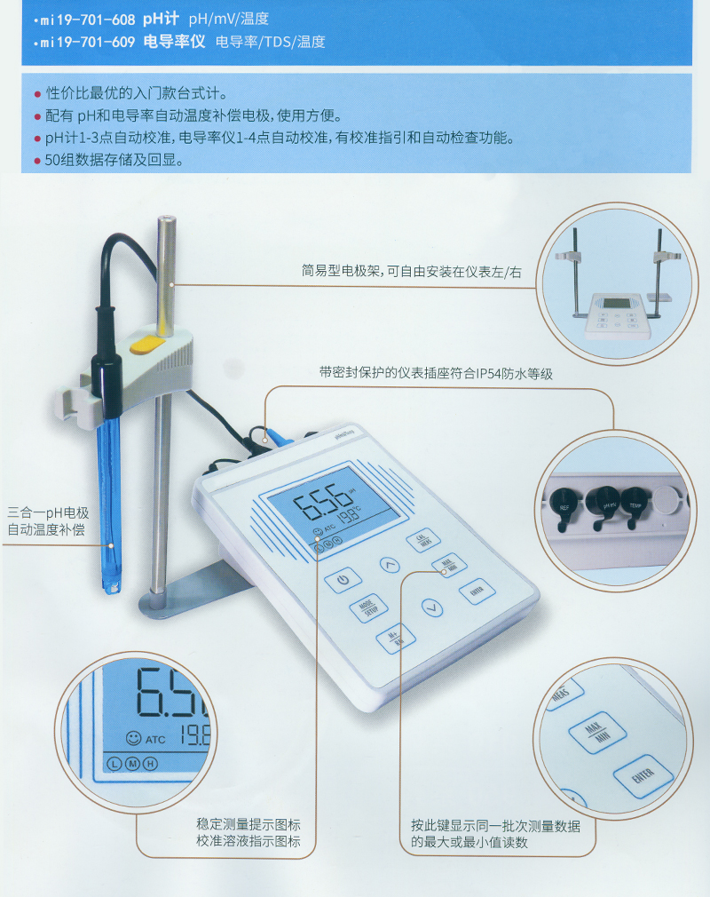 ·具有手动温度补偿、一点或二点校准