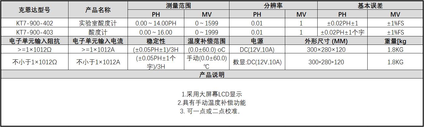 ·采用大屏幕LCD显示 ·具有手动温度补偿功能 ·可一点或二点校准