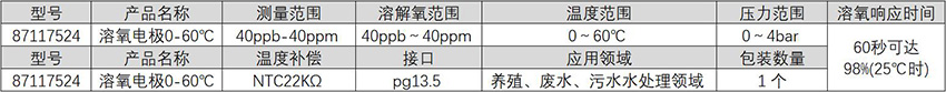 订货号 制造商型号 溶解氧测量范围 溶解氧测量精度 饱和度测量范围 温度范围 压力范围 溶氧响应时间 温度补偿 接口 应用领域 包装数量 价格 购物车