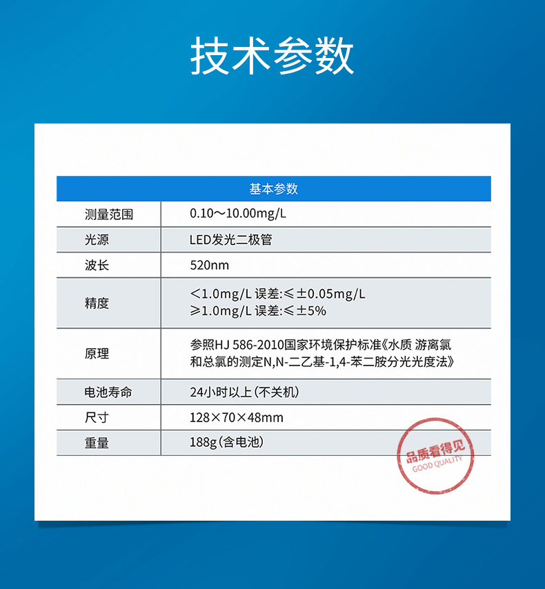 ·连续快速的监测医疗废水中的余氯含量,仪表具有高度的智能化和灵活性,可同时测量余氯、温度。