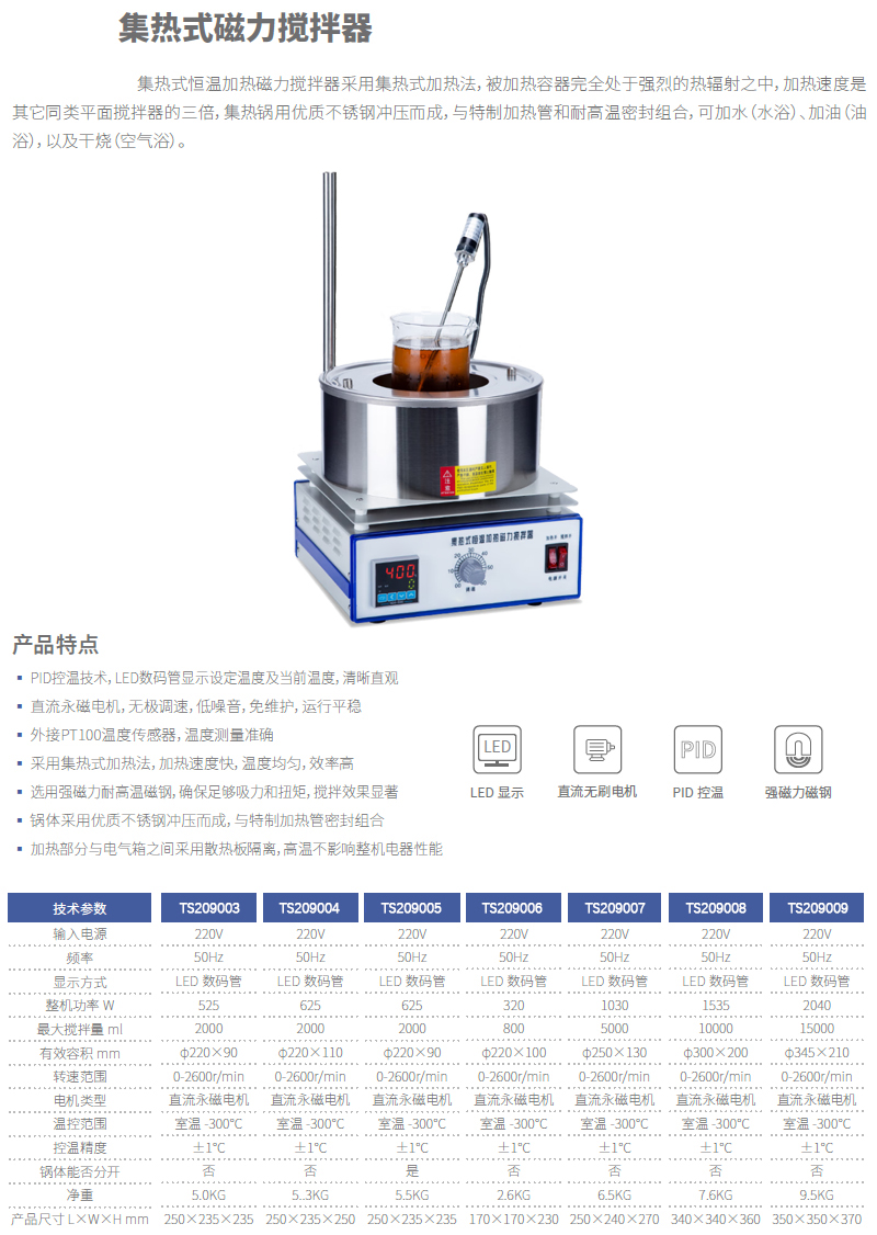 ·采用集热式加热法,加热速度快,温度均匀,效率高 ·主要部件选材优良,直流大功率电机,搅拌力大,噪音小 ·磁钢选用磁力最强的“钕铁硼”永磁做转子,确保足够吸力和扭矩 ·锅体采用优质不锈钢冲压而成,与特制加热管密封组合 ·可水浴、油浴以及干烧,功能性多样选择 ·加热部分与电气箱之间采用散热板隔离,高温不影响整机电器性能