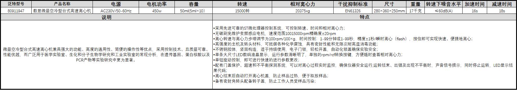 A30413 80911947 50ml(5ml×10) 20375xg —— —— —— AC230V/50-60Hz 450w 15000转 EN61326 280×360×250mm ≤60dB(A) 16s 18s 18900.00