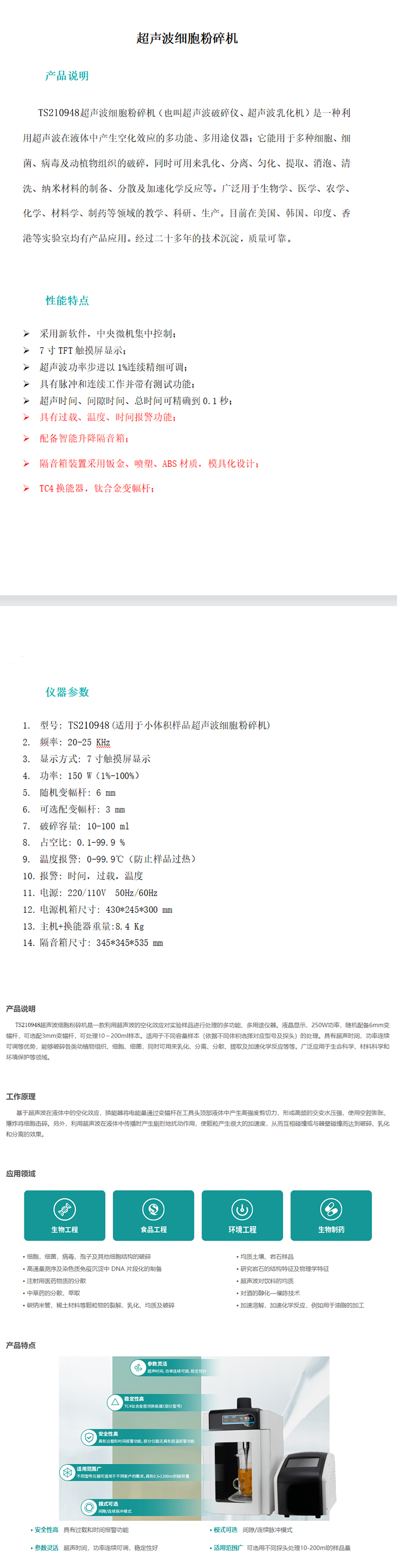 ·带有过载保护功能及变幅杆未浸入液体中会自动保护变幅杆不受损坏;