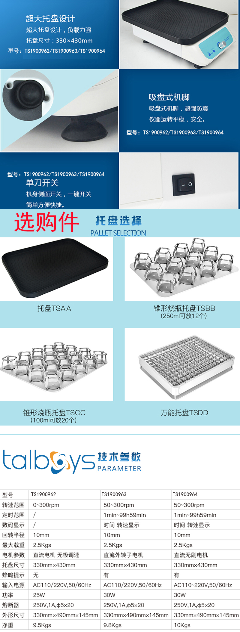 ·数码显示屏:时间/转速显示,仪器运转数据一目了然。 ·吸盘式机脚,超强防震,高速平稳,无噪声